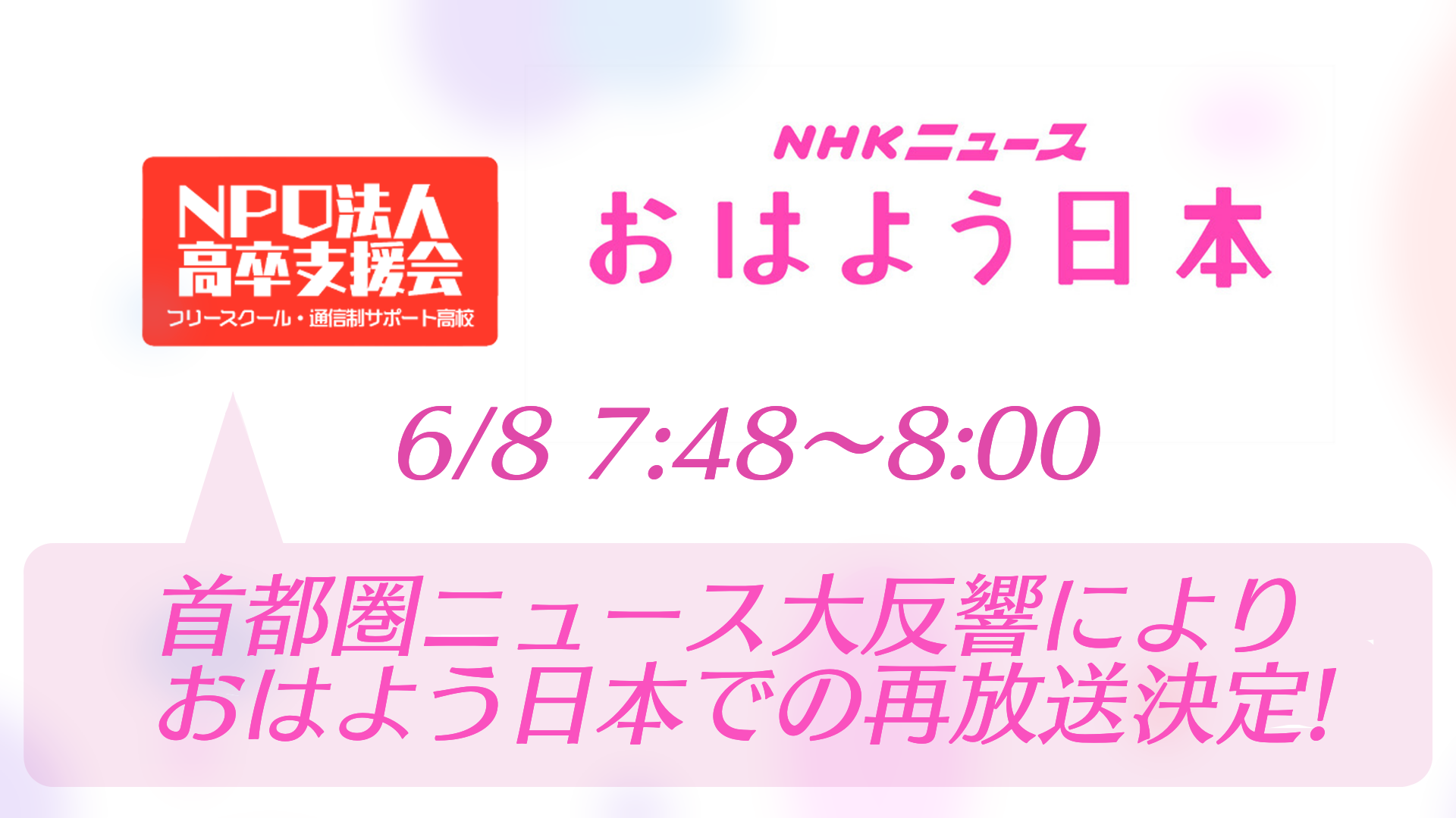 生活リズム取り戻せ 子ども支援するNPOでNHK おはよう日本 7:48〜8:00出演します。