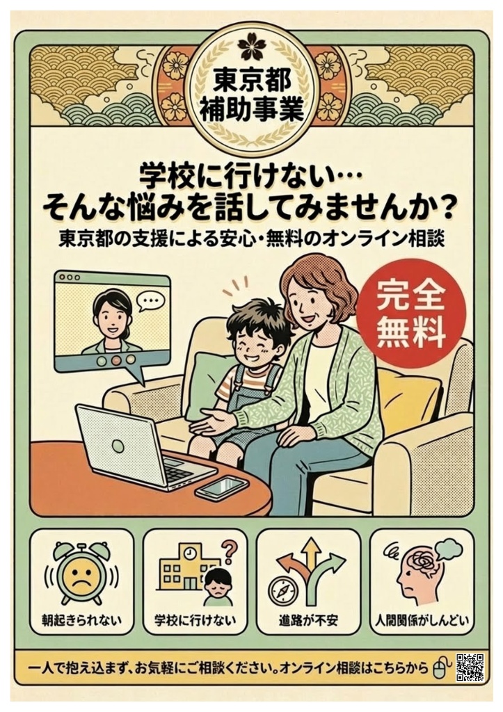 【東京都補助事業】学校に行けない…その悩み、まずはオンラインで話してみませんか?
