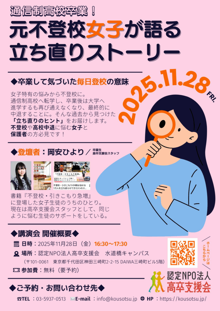 📢 【講演会のお知らせ】元不登校女子が語る 立ち直りストーリー