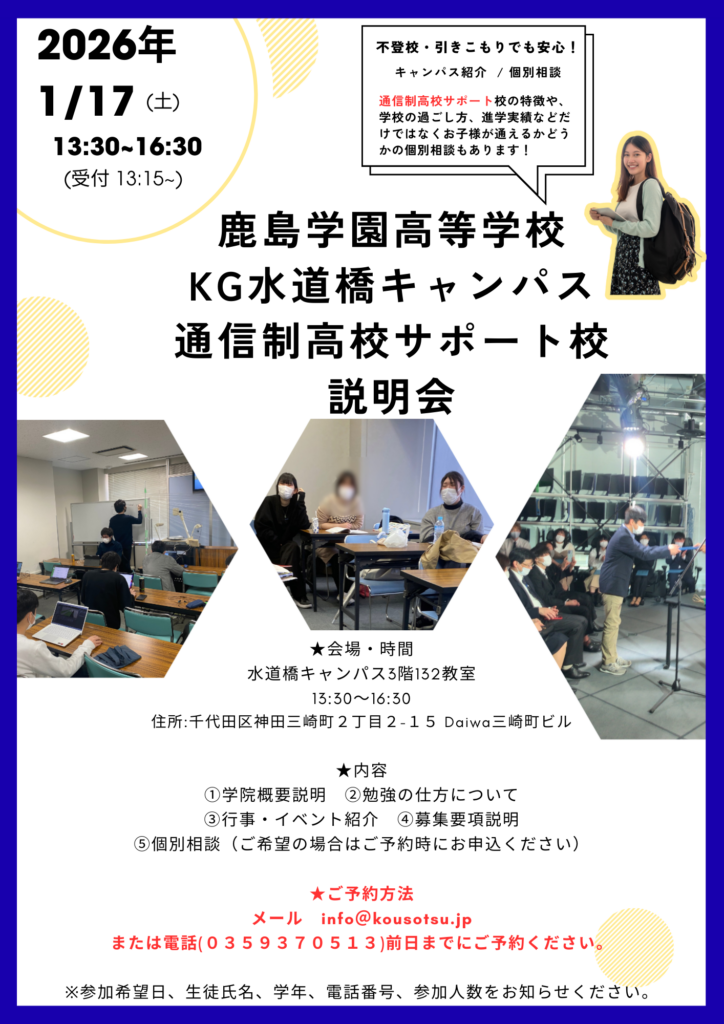 説明会は前日までにご予約が必要です。 以下のいずれかの方法でお申し込みください。