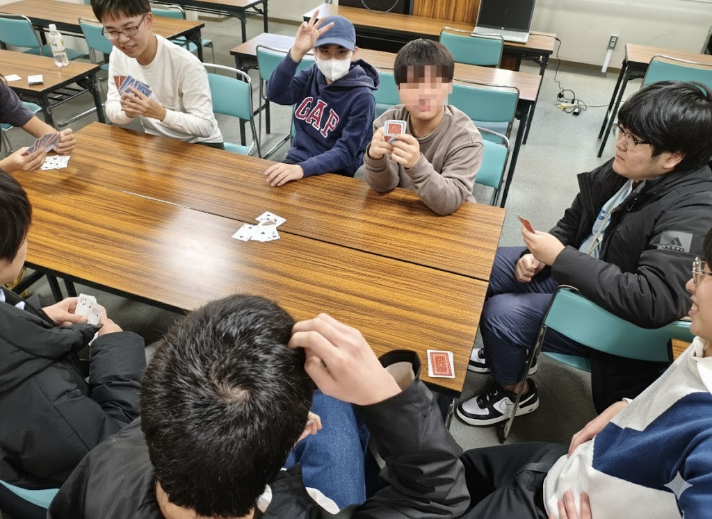 写真は、午後の「授業時間中」のワンシーン。みんなでトランプに興じています。