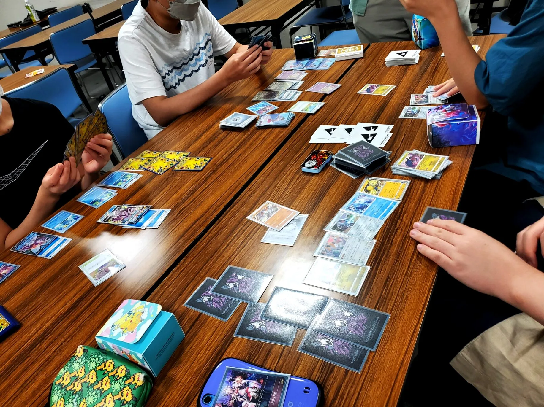 毎週火・金曜日に活動しています。感想戦やディスカッションでより良い戦術を模索したり環境の分析を通してデッキの向上を目指します。初心者の方にはルール説明・デッキ制作から指導しています。